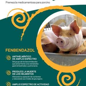 Premezcla medicamentosa de Flubendazol al 6%. Prevención y tratamiento de la helmintiasis del cerdo y de las aves (gallinas ponedoras, pollos de engorde y ocas) producidas por parásitos sensibles.